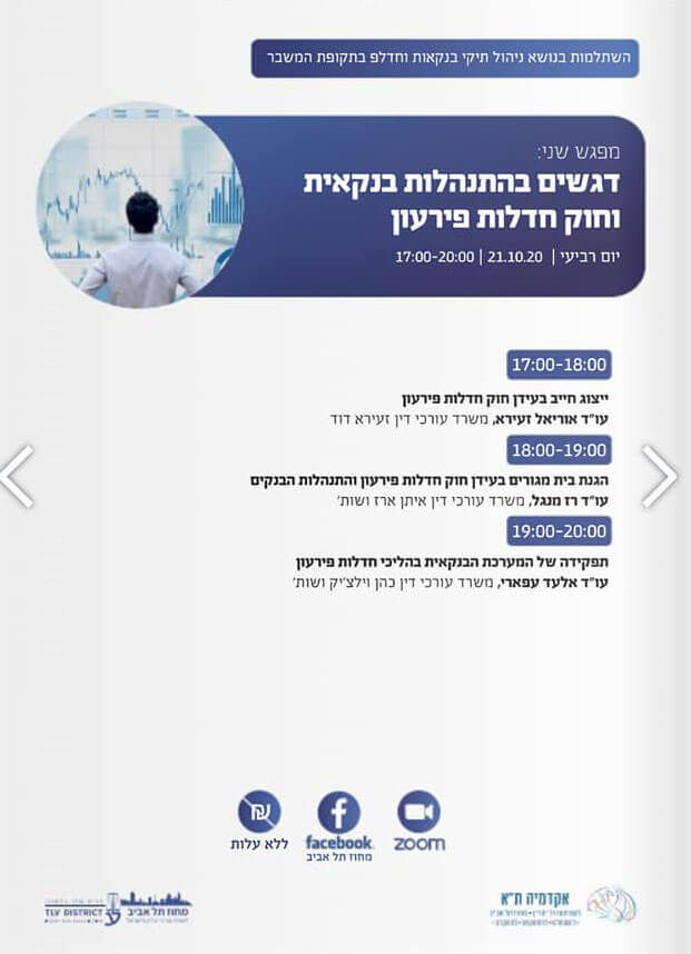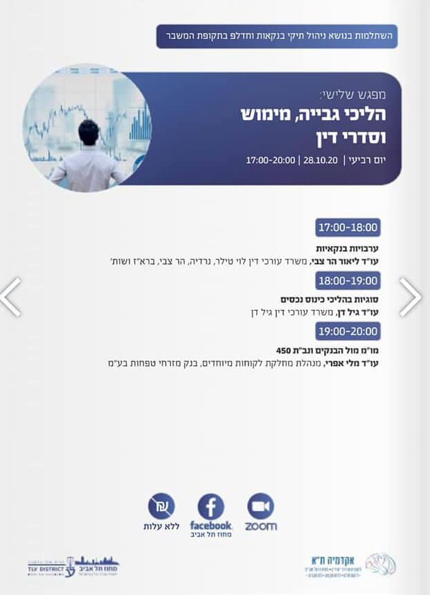 בתאריכים 14, 21 ו- 28 לאוקטובר. ריכוז אקדמי – עורך דין גיל אפרתי.